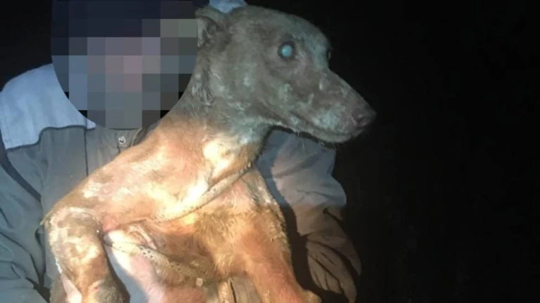 Perro rescatado del pozo