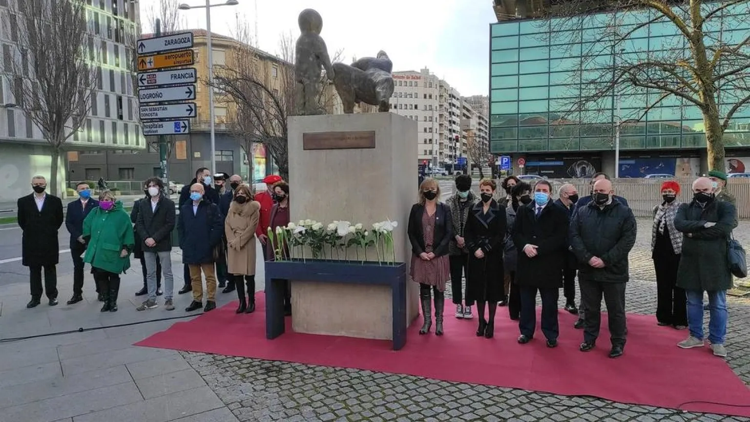 El Gobierno de Navarra, acompañado de representantes del Parlamento de Navarra, la Delegación del Gobierno en Navarra y miembros de las Fuerzas de Seguridad, ha conmemorado este jueves el Día Europeo de las Víctimas del Terrorismo con la lectura de una declaración y una ofrenta floral junto al monumento a las víctimas del terrorismo en la plaza de Baluarte de Pamplona.