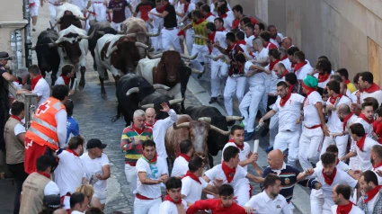 Último encierro de los sanfermines que ha sacado a las calles de la capital navarra de la legendaria ganadería de Miura. 65 años llevan viniendo aquí a Pamplona, los Miura. Han protagonizado un encierro rapidísimo y limpio. Ha durado 2:18 segundos.