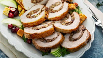 Solomillo con relleno navideño al horno y guarnición de invierno