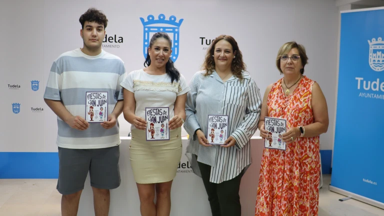 La concejala de Festejos del Ayuntamiento de Tudela, Verónica Gormedino, ha presentado esta mañana el programa oficial de las fiestas de San Juan 2025, que se celebrarán durante el fin de semana del 20 al 22 de junio. En el acto ha estado acompañada por representantes de entidades clave en la organización: Laura Martínez, presidenta de la Asociación de Vecinas y Vecinos del Barrio de Lourdes; Ascen Laínez, en representación del Grupo del Paloteado; y David Vera, de la Asociación Cultural Miguel Sánchez Montes.
