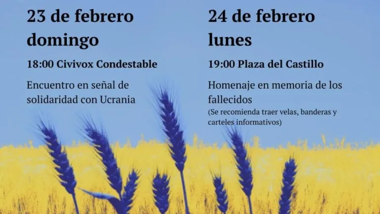 Domingo 23 a las 6 en Condestable y lunes 24 en la Plaza del Castillo, a las 7. Apoyo a Ucrania en el tercer aniversario dela invasión. .