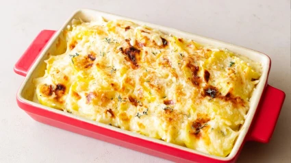 Antonio Teruel propone en esta ocasión hacer estas patatas a lo pobre con uno de los pescados más utilizados, el bacalao. Eso sí, además añade bechamel y queso para terminar gratinando el plato.