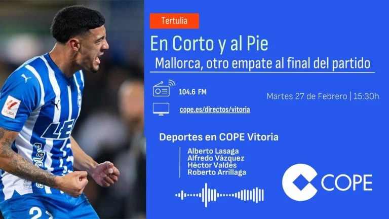 La tertulia de Deportes Cope Vitoria, "En Corto y al Pie", analiza el partido entre Alavés y Mallorca en Mendizorroza que terminó con un empate a uno, en un encuentro donde ambos equipos tuvieron dificultades para brillar y las defensas se impusieron en ambas áreas. Curiosamente, los goles llegaron por parte de jugadores con perfiles defensivos. En la primera mitad, el Mallorca propuso y mereció más, pero se encontró con un magnífico Sivera que evitó que se adelantara el equipo bermellón.