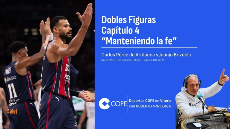 En la tertulia "Dobles Figuras" de COPE Vitoria, Roberto Arrillaga, Juanjo Brizuela y Carlos Pérez de Arrilucea desglosaron la primera victoria de Baskonia en la temporada ante Real Madrid (105-100), un triunfo liberador tras un inicio complicado. Los expertos destacaron la remontada, el estilo rápido de Galbiati, la intensidad emocional y la necesidad de consolidar la dinámica ante un exigente calendario con partidos contra París, Partizan y Granada, mientras reflexionaron sobre las decisiones tácticas, como el descarte de Howard, y la importancia de forjar un bloque compacto.