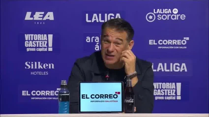 Luis García Plaza en Sala de Prensa de Mendizorroza