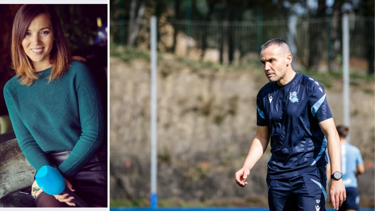 Jessica Figueroa (periodista y analista deportiva) y Sergio Francisco (entrenador de la Real Sociedad).
