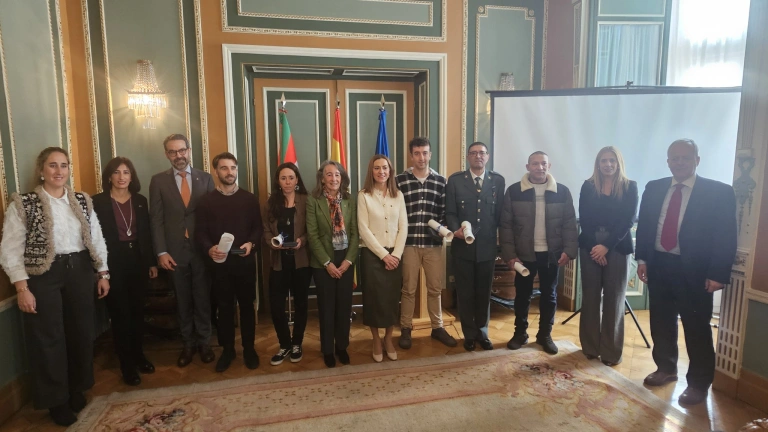 La delegada del Gobierno en Euskadi, Marisol Garmendia, y la directora general de Protección Civil y Emergencias del Gobierno de España, Virginia Barcones, han presidido la entrega de las Medallas, otorgadas anualmente y que reconocen y premian valores como el compromiso, el altruismo y la generosidad en situaciones de especial vulnerabilidad.