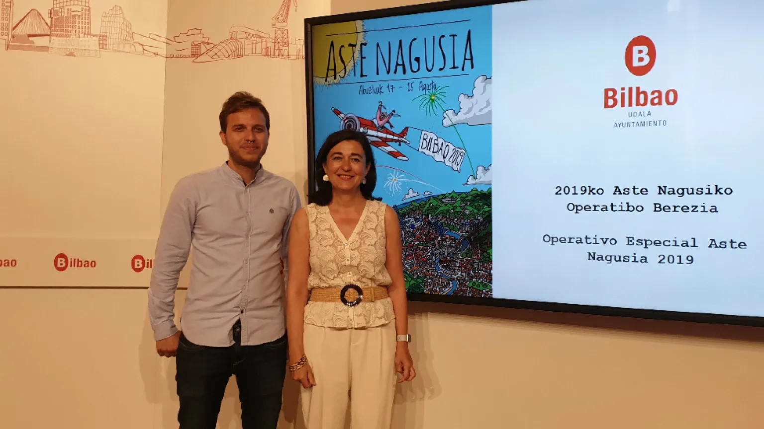 Esta ha sido una de las principales novedades incluidas en el operativo especial de Movilidad, Transporte Público, Salud y Consumo diseñado por el Ayuntamiento de Bilbao con motivo de la Aste Nagusia y que ha sido presentado este viernes por la concejala de Salud y Consumo, Yolanda Díez, y el concejal adjunto de Movilidad y Sostenibilidad, Álvaro Pérez.