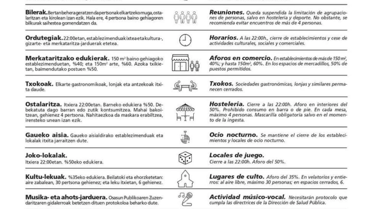 Medidas activas en Euskadi a partir del domingo