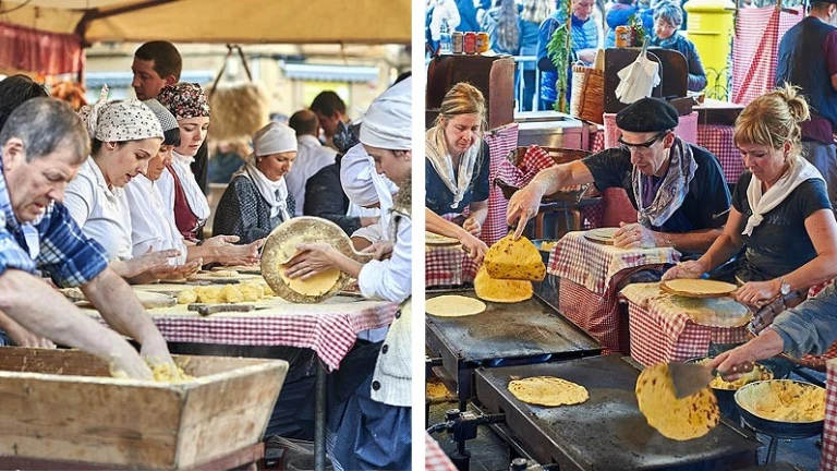 Miles de personas comen pintxos y talos de txistorra y beben sidra y disfrutan de numerosos concursos como los de txistorra, verduras y trajes de baserritarras. Hay también degustación de miel, herri Kirolak y actuaciones musicales a lo largo de esta joranda festiva.