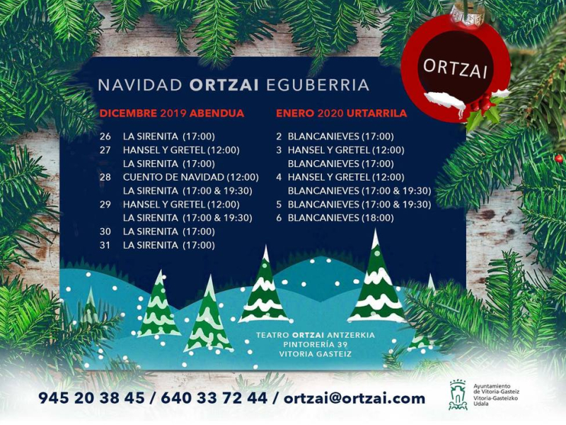 El Teatro Ortzai Antzokia contribuye cada año a que la Navidad se sienta de una manera más especial. La compañía vitoriana de teatro, con actores y actrices profesionales que forman un elenco de enorme calidad, dirigida por el actor y director Iker Ortiz de Zarate, hacen que esta época del año se convierta en algo mágico cuando entras en él.