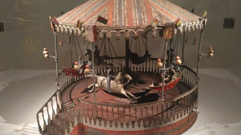 “100 años, 100 juguetes” se exhibe en la sala Fundación Vital hasta el 29 de marzo. Hay un carrusel pintado a mano del siglo XIX y un Scalextric a manivela