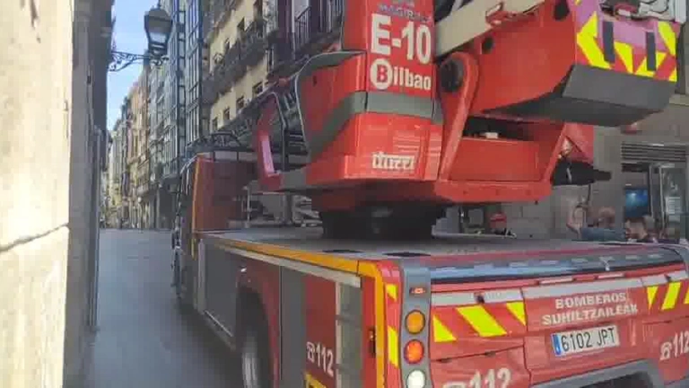 Bomberos, sanitarios y policía Local en el derrumbe de un edificio en Bilbao