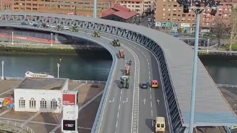 La caravana de tractores llega a Bilbao desde el barrio de Deusto