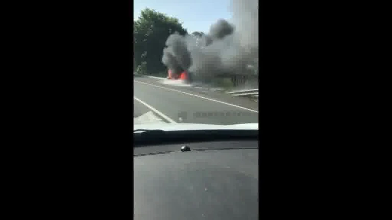 Un coche ardiendo sin control se precicpita por una carretera de acceso a Bilbao