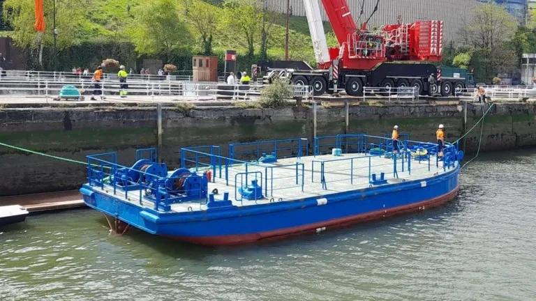 La gabarra del Athletic ya flota en la ría
