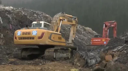 Operarios trabajando en el vertedero derrumbado en Zaldibar