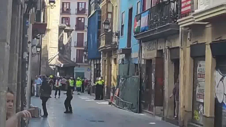 La zona del derrumbe de un edificio en Bilbao continúa acordonada