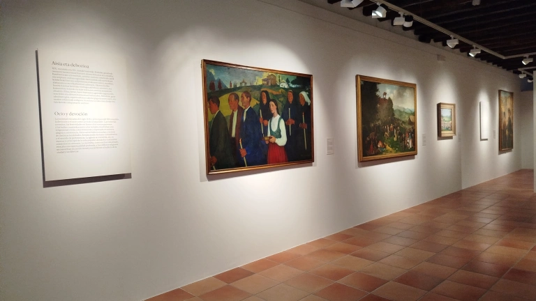 Después, la exposición se adentra en la religiosidad popular, presente en iglesias y ermitas, que, más allá de su papel espiritual, se convierten en espacios de encuentro, celebración y comercio en romerías y mercados. El género del paisaje adquiere también gran protagonismo en obras que dejan constancia de templos, ermitas y santuarios que, repartidos por toda la geografía vasca, interesaron a pintores y pioneros de la fotografía.