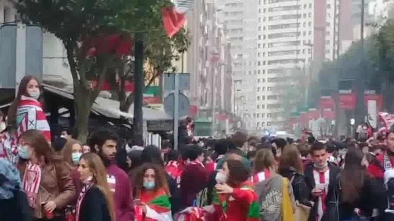 Cargas y contenedores ardiendo en una multitudinaria concentración en Bilbao antes de la Final de Copa