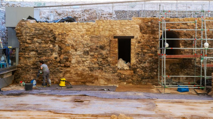 La intervención arqueológica se lleva a cabo en el muro norte de las termas y en la sala templada