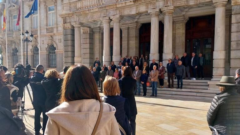 Cartagena ha guardado un minuto de silencio este lunes a las puertas del Palacio Consistorial como "muestra de cariño y respeto" por las víctimas del accidente ferroviario de Adamuz. La alcaldesa ha mostrado el pésame a los afectados y sus familias, expresando su deseo de que "el número de víctimas mortales no crezca y que los heridos puedan recuperarse lo antes posible".