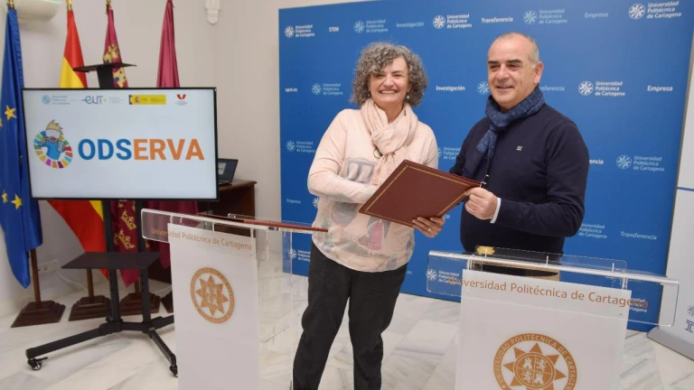 La rectora de la UPCT, Beatriz Miguel, ha presentado la iniciativa junto al presidente de la PVE y presidente de la Plataforma del Tercer Sector, Luciano Poyato. En el acto, la rectora ha explicado que el proyecto experimental ODSERVA es la primera de las iniciativas que se ha puesto en marcha fruto de la colaboración entre las dos entidades.