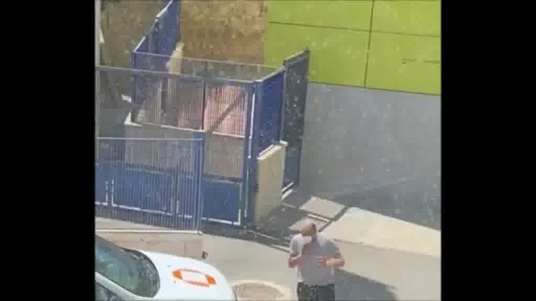 En la imagen se puede apreciar como uno de los inmigrantes salta la valla de las depenmdencias policiales de Cartagena donde fueron trasladados tras su llegada al puerto.