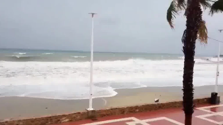 Playa de Poniente de Águilas donde las olas del mar llegan hasta el paseo