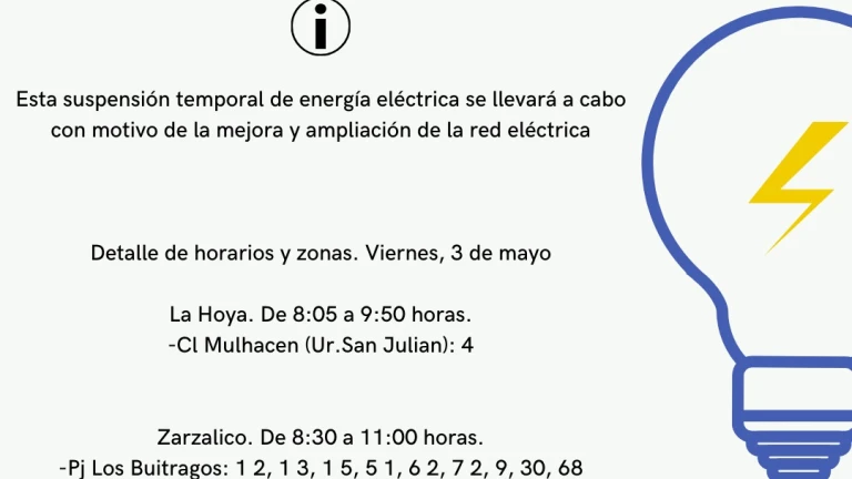Estas dos pedanías sufrirán cortes de suministro de luz durante los próximos días