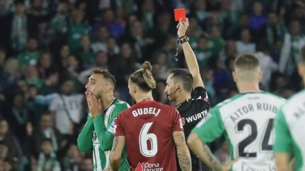 El colegiado lorquino expulsó a Montiel del Sevilla tras una dura entrada revisada por el VAR, así como a Fekir y Borja Iglesias por los verdiblancos. Partido tenso.