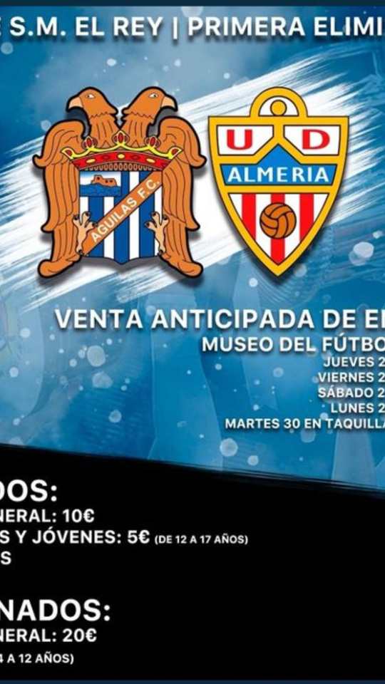 El Águilas FC pone a la venta las entradas para el partido de primera ronda de Copa del Rey que le medirá el martes 30 de noviembre a las 21.00 horas a la UD Almería.
