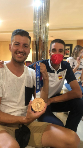 El ciclista bastetano ha logrado la medalla de bronce en BTT en las Olimpiadas de Tokio 2020. El ex integrante del equipo lorquino Vicma Bike vivió un emocionante recibimiento.