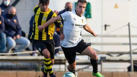 Tomás Inglés, delantero lorquino del juvenil del Valencia, marca su séptimo gol de la temporada tras el empate a dos contra el Vilamarxant