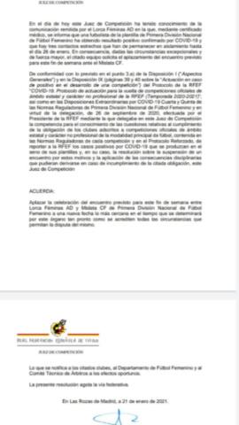 El equipo femenino presentó solicitud de aplazamiento ante la RFEF por un caso positivo en el cuadro blanquiazul. Segundo partido aplazado para las de Fernando Fernández.