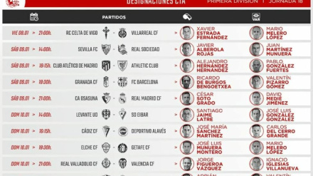 El partido se jugará este domingo a las 16.15 horas en el Carranza. El lorquino estará asistido en VAR por Del Cerro Grande.