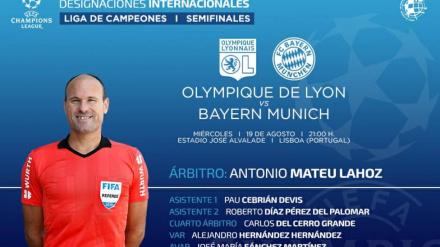 El colegiado lorquino será asistente de VAR en el partido que jugará el Bayern de Munich y el Olympique de Lyon este miércoles