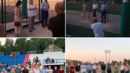 El alcalde Diego José Mateos y la edil de deportes Irene Jódar estuvieron en el acto de presentación de las placas de los nuevos nombres de los campos de fútbol de La Torrecilla