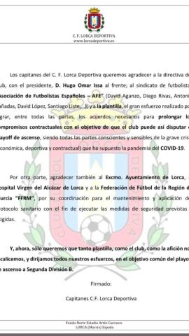 El club lorquino ya tiene el visto bueno por parte de la Concejalía de Deportes y seguirá un estricto protocolo para entrenar como adelantamos en COPE
