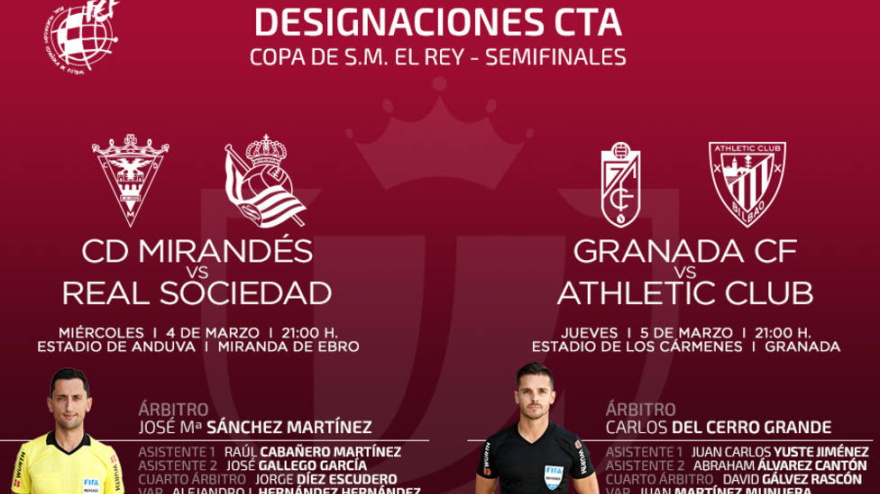 El colegiado lorquino dirigirá este miércoles el partido de vuelta de semifinales de Copa del Rey entre el CD Mirándes y la Real Sociedad (1-2)