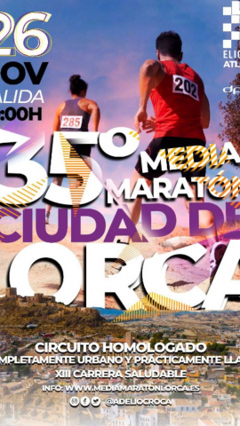 La AD Eliocroca y la Concejalia de Deportes del Ayuntamiento de Lorca, organizan la edición 35 de la Media Maratón Ciudad de Lorca que se celebra el domingo 26 noviembre