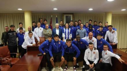 El Águilas FC, equipo recién ascendido a Segunda RFEF ha sido recibido en el Ayuntamiento aguileño por la alcaldesa, Maria del Carmen Moreno y el edil deportes, Cristóbal Casado.