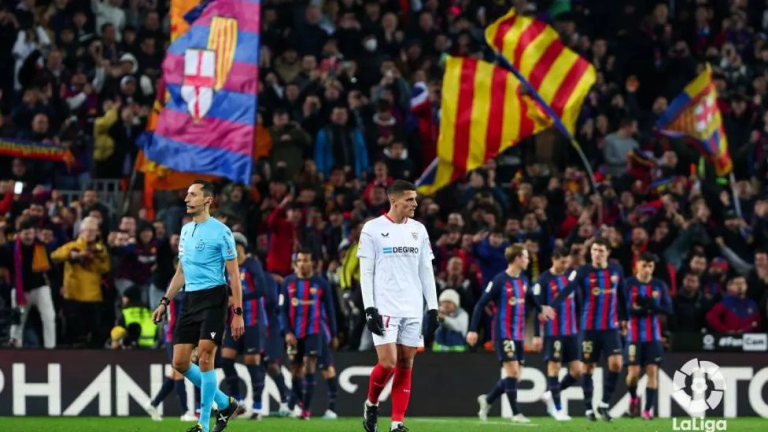El colegiado lorquino Sánchez Martínez dirigió el partido en el que los catalanes fueron superiores a los hispalenses. Jordi Alba, Gavi y Raphinha autores de los goles.