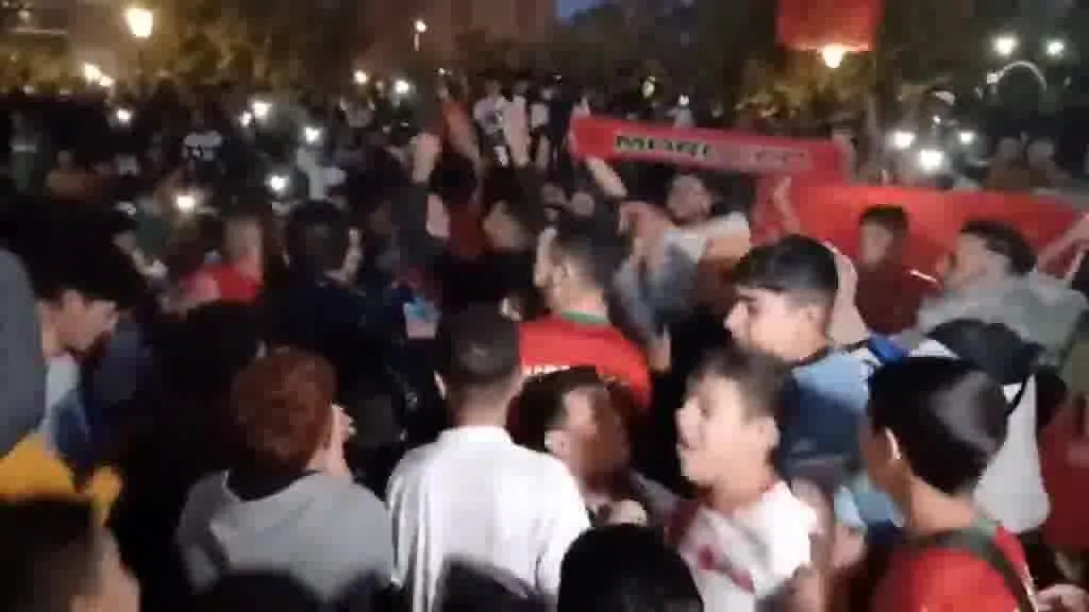 Cientos de marroquíes, con banderas, bufandas y camisetas de su país celebraron en el Parque de San Diego el pase de su selección a los octavos de final del Mundial.