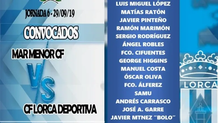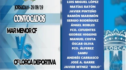 El partidazo de la jornada, dentro del grupo XIII de Tercera División se jugará en el Pitín de San Javier. El Mar Menor de Paco García recibe al CF Lorca Deportiva, que esta semana ha estado marcada por los temas extradeportivos que afectan a la entidad blanquiazul.