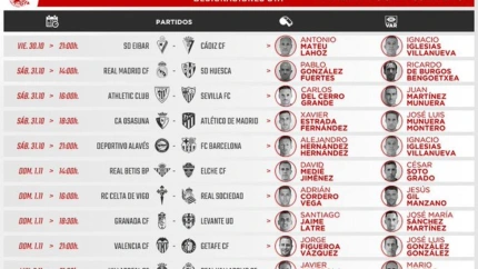 José María Sánchez Martínez volverá a ejercer como árbitro VAR este fin de semana. El colegiado lorquino estará en la sala de video arbitraje del partido que medirá el domingo 1 de noviembre a las 18.30 horas en Los Cármenes al Granada CF y al Levante UD. El equipo andaluz, revelación del campeonato que recibe a un necesitado cuadro granota que llega tras empatar a uno ante el Celta de Vigo en casa.