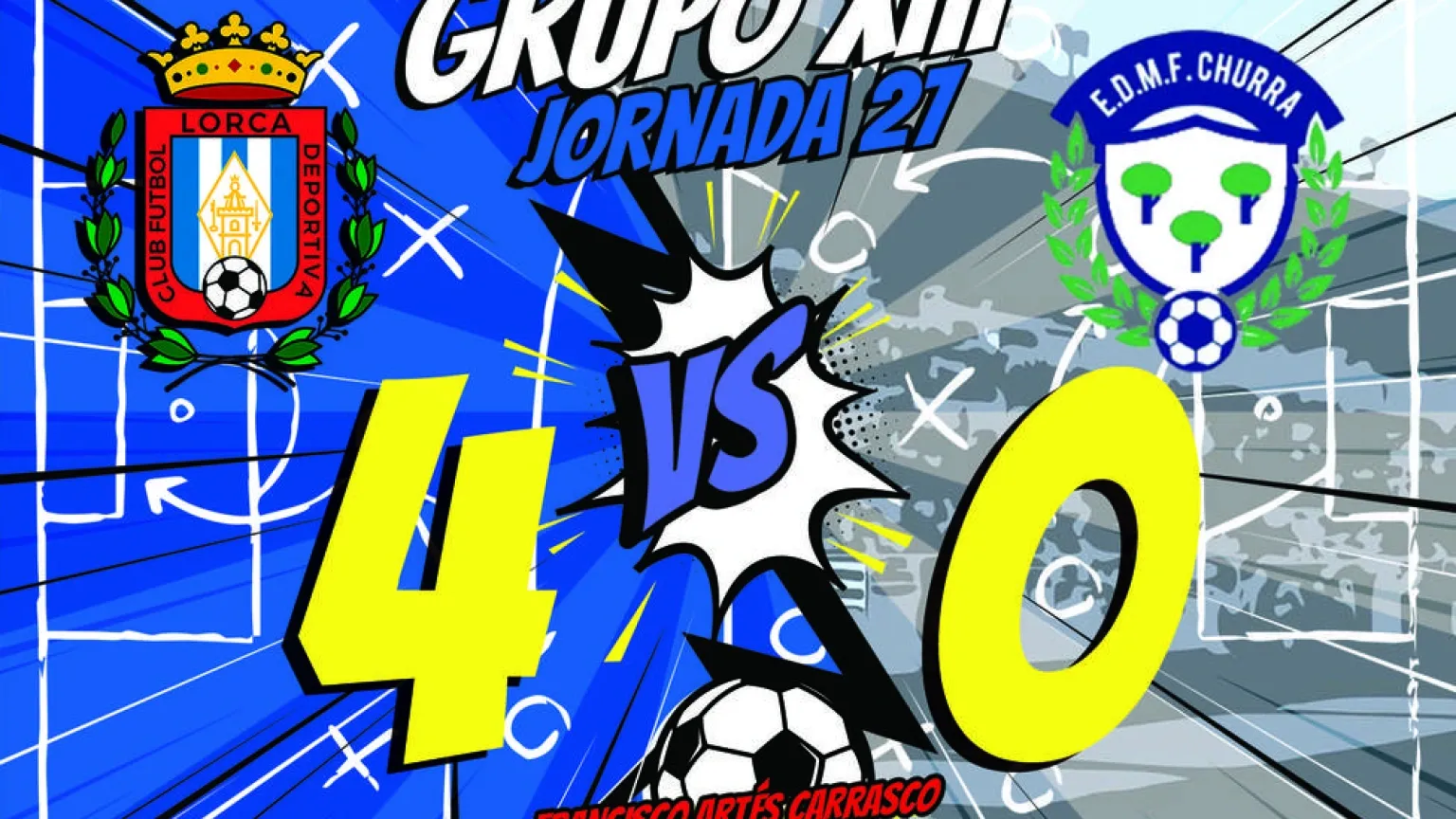 Los lorquinos golean a pesar de no hacer un buen partido. Carrasco y Bolo siguen su lucha particular por el pichichi. Marcan y suman 17 goles cada uno.