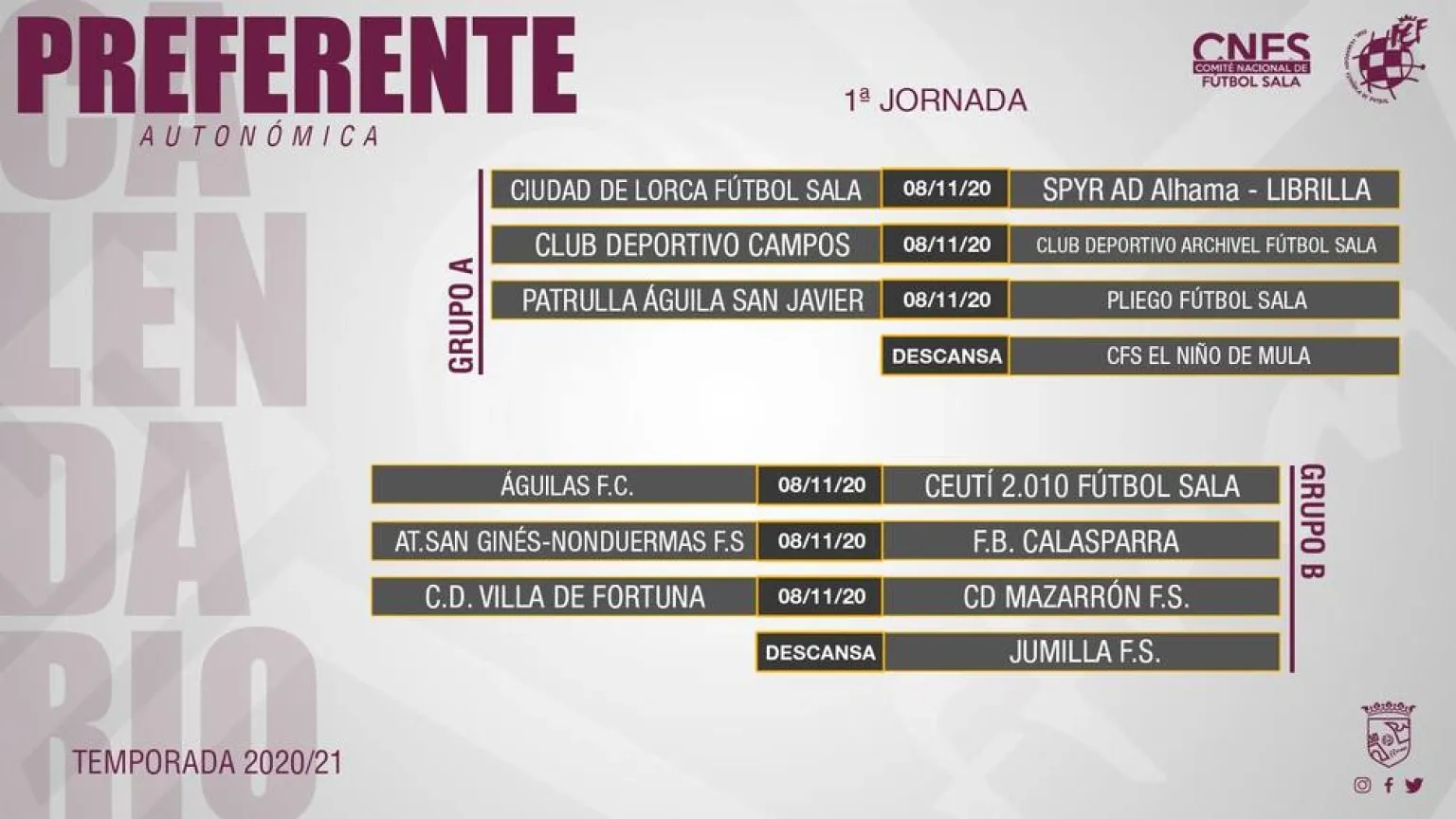 Ciudad de Lorca FS estará en el grupo A. Águilas FS y CD Mazarrón FS estarán en el B