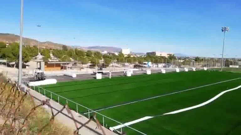 El nuevo césped artificial ya está siendo instalado en el Juan Casuco.